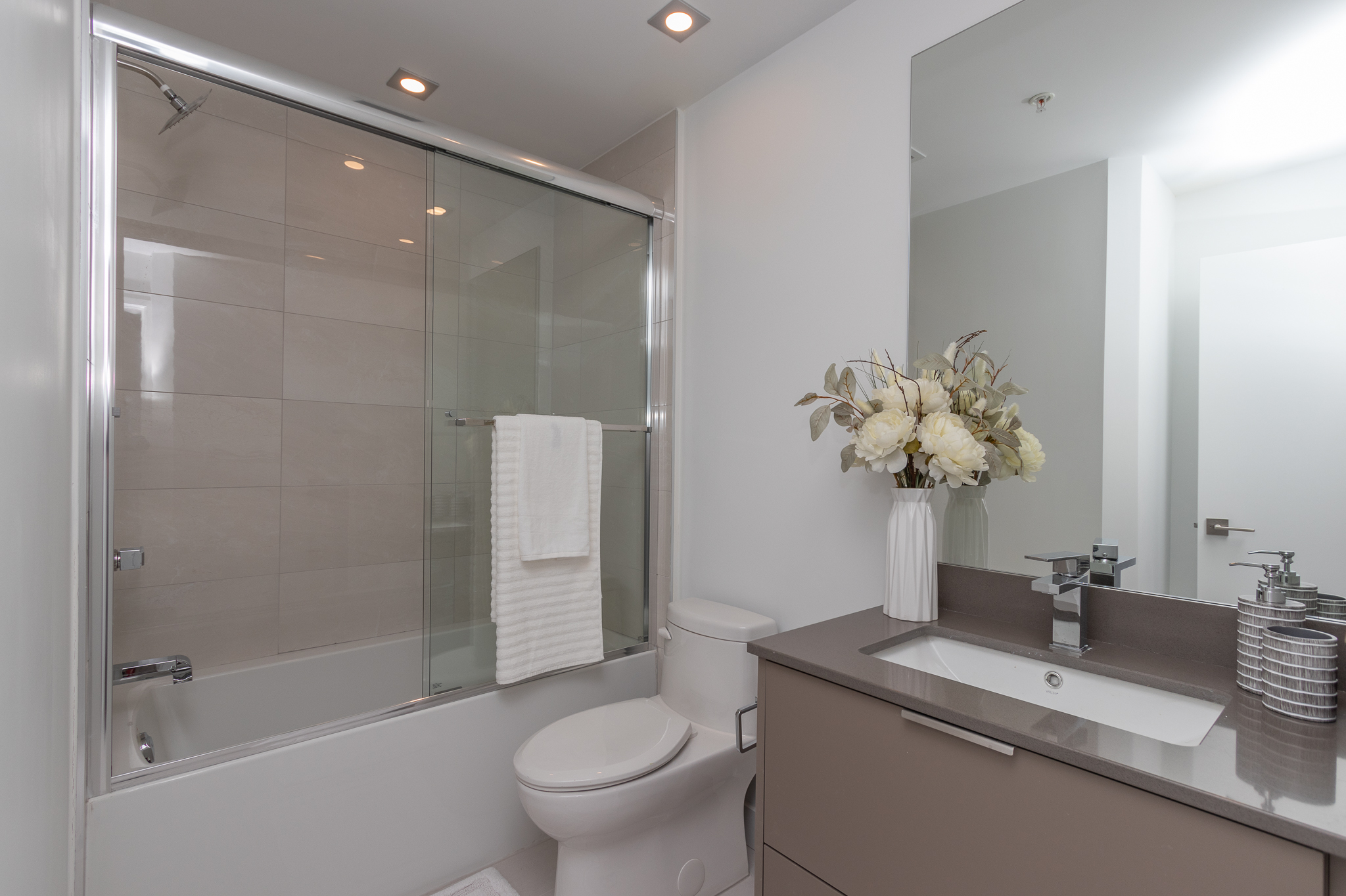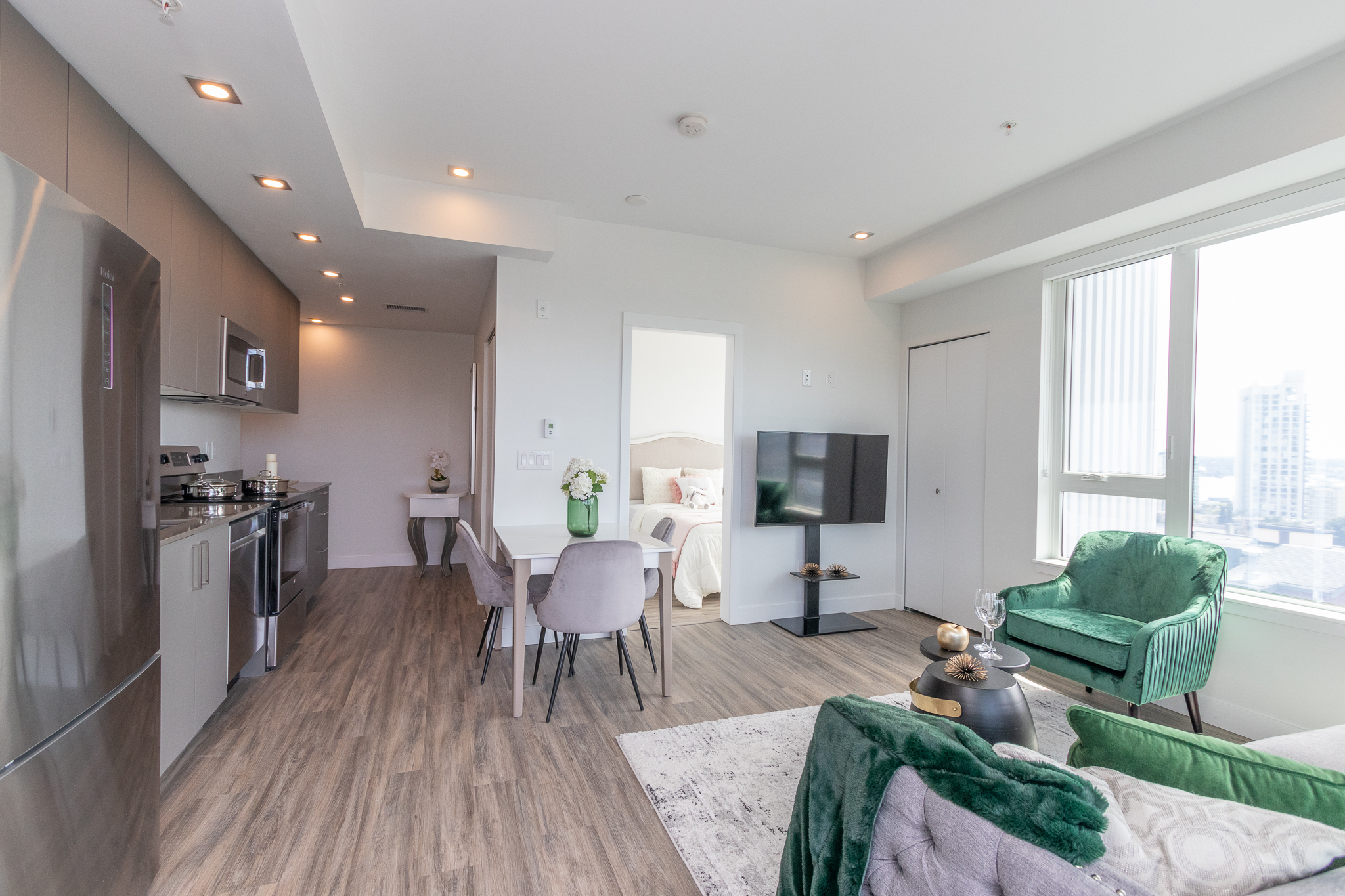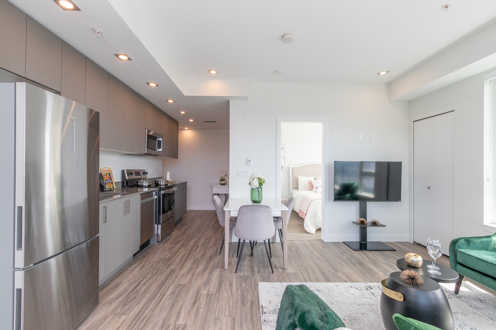 711 Sq. ft with 150 Sq. ft balcony, 2 bedroom and 2 full bathroom, master bedroom with ensuite and 2 separate closet, open concept, lots of natural light, radiant flooring heating system, large windows, washer and dryer.