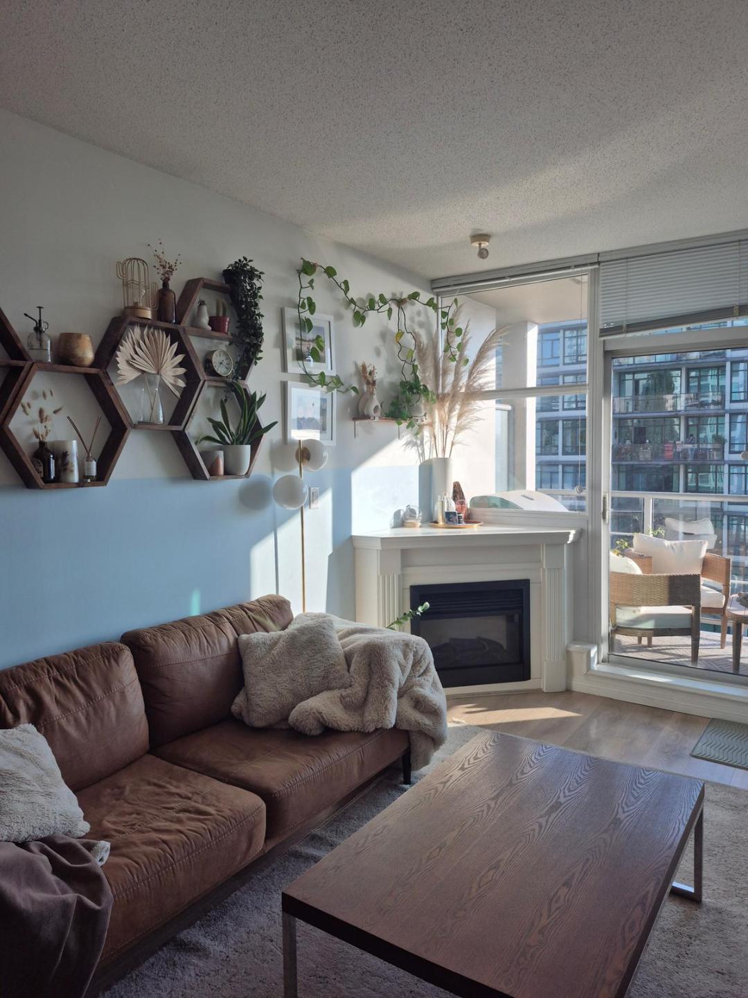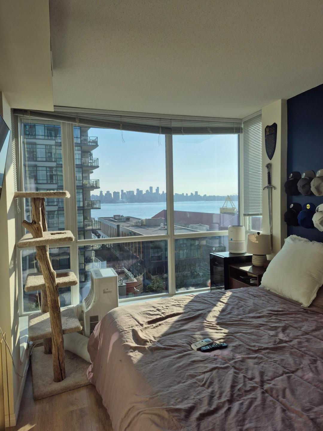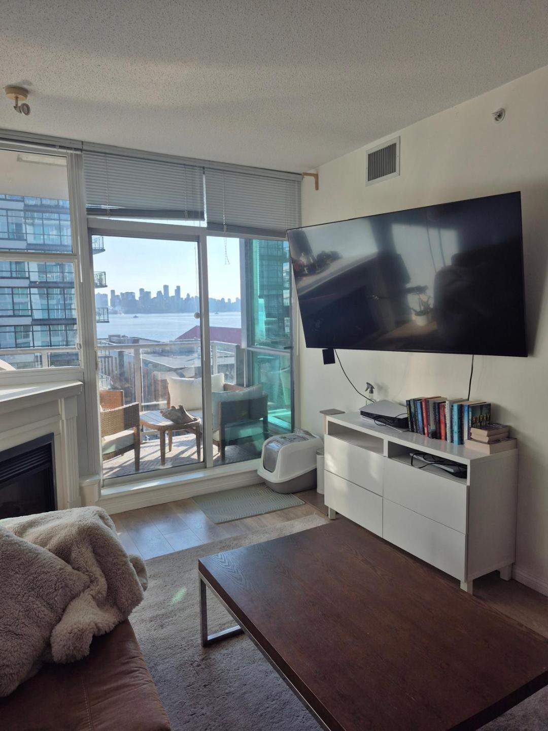 Bright south-facing condo with harbour & city views, Spacious open concept layout with 9’ ceilings, Gourmet kitchen with granite counters & stainless steel appliances, Cozy electric fireplace, In-suite laundry for your convenience, Air conditioning for year-round comfort, Balcony to enjoy fresh air and views