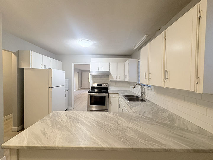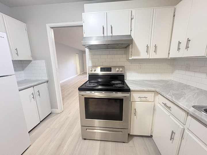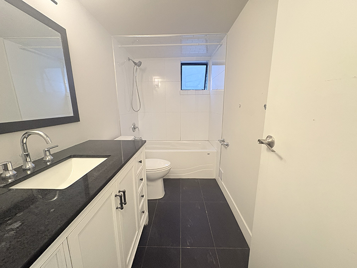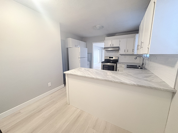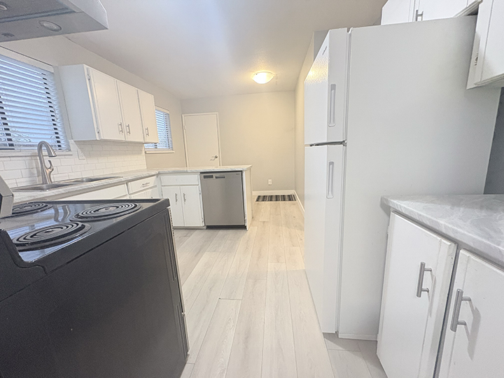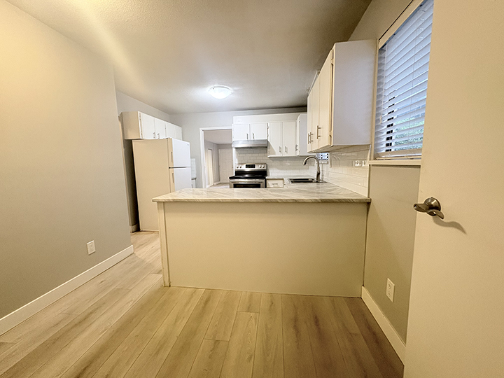 Lower level, Spacious 3 Bedroom, 2 full bathroom, 1100 sq. Ft., laminate flooring, spacious living and dining area, functional layout, kitchen with a nook (eating area), master bedroom with ensuite, lots of closet, laundry room with full size washer and dryer, 1 parking space at the back (from the back alley)